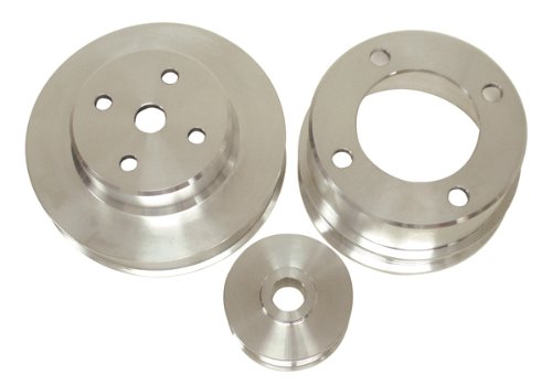- Machined finish billet aluminum 6 groove serpentine crank pulley, water pump pulley, and alternator pulley without cover (nose).