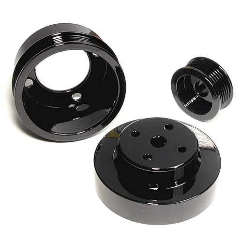 BBK Performance 1528 Black Powdercoat-Steel Underdrive Pulley Kit for 94-95 Ford Mustang 5.0L, (3 Piece) Feature